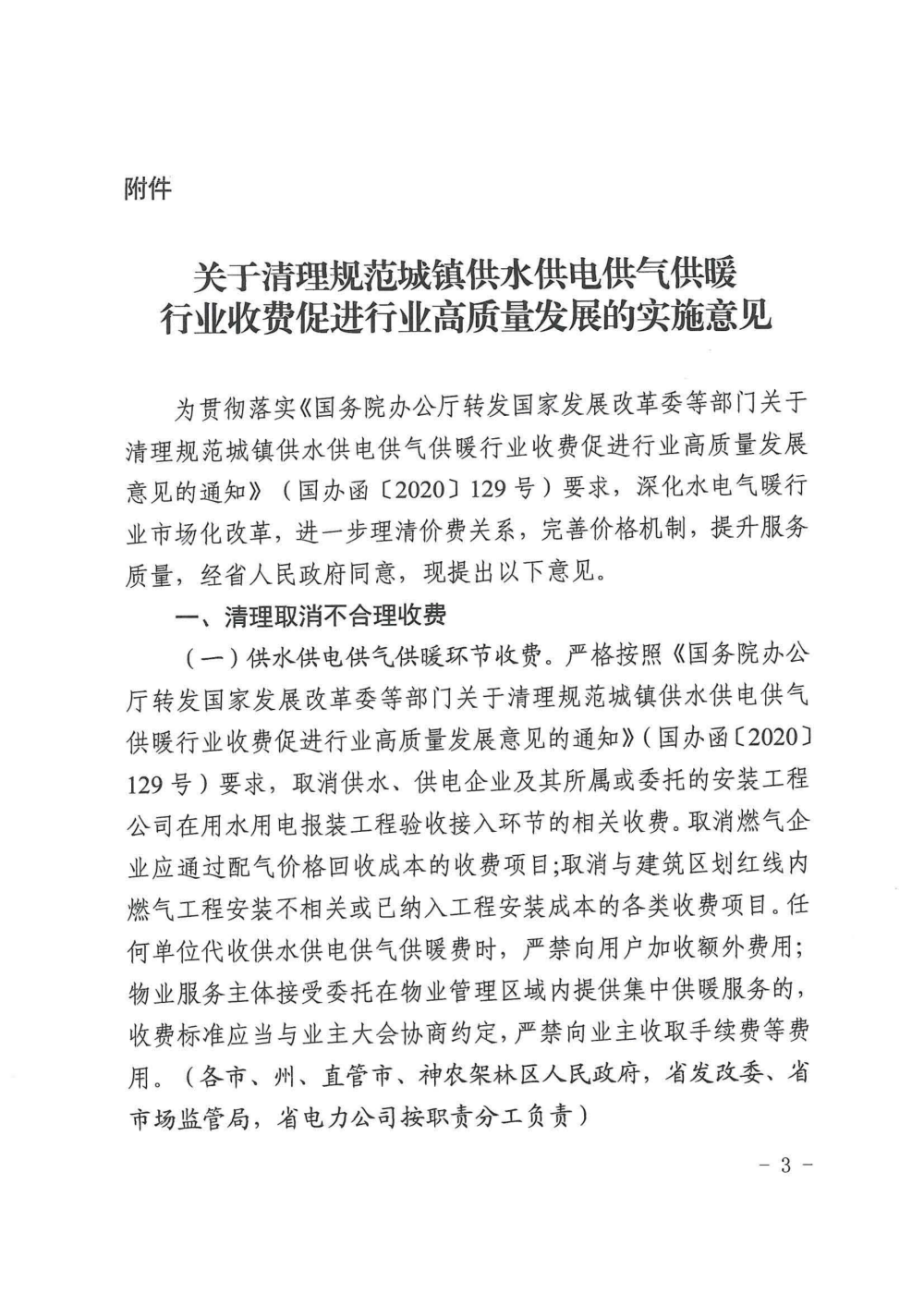 關于印發清理規范城鎮供水供電供氣供暖行業收費促進行業高質量發展實施意見的通知
